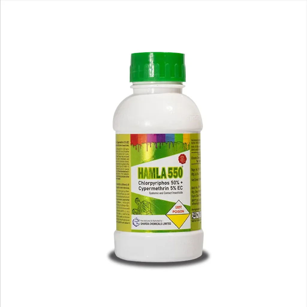 तो अब हम बात करतेहै। Hamla505 के टेक्निकलनामके बारे में तो इसका तकनीकी नाम (Choropyriphos 50 % + Cypermethrin 5 %) होता है। यह लगभग सभी प्रकार के तनाछेदक, फलछेदक, लीफ फोल्डर, जिसे हम पट्टी मोड़क भी कहते है और साथ ही अन्य प्रकार के कीटों को भी पूरे तरीके से रोकथाम करता है।